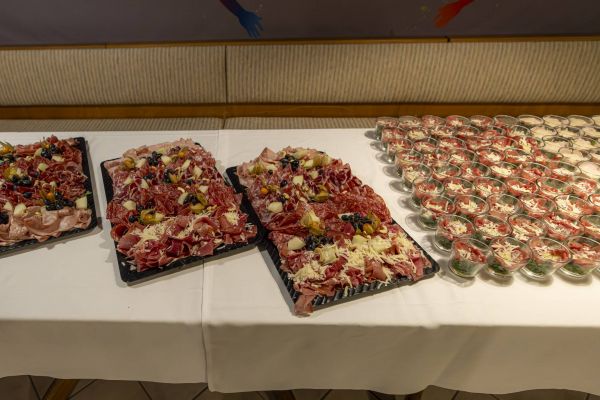 Ein besonderes Highlight des Abends war ein reichhaltiges Buffet mit erlesenen italienischen Spezialitäten, das die Besucher begeisterte. Serviert wurden köstliche Bruschetta, Antipasti-Platten, Caprese-Spieße, Carpaccio und Vitello Tonnato im Glas, vielfältige Blätterteiggebäcke sowie Desserts wie Panna Cotta und Crème Brûlée.